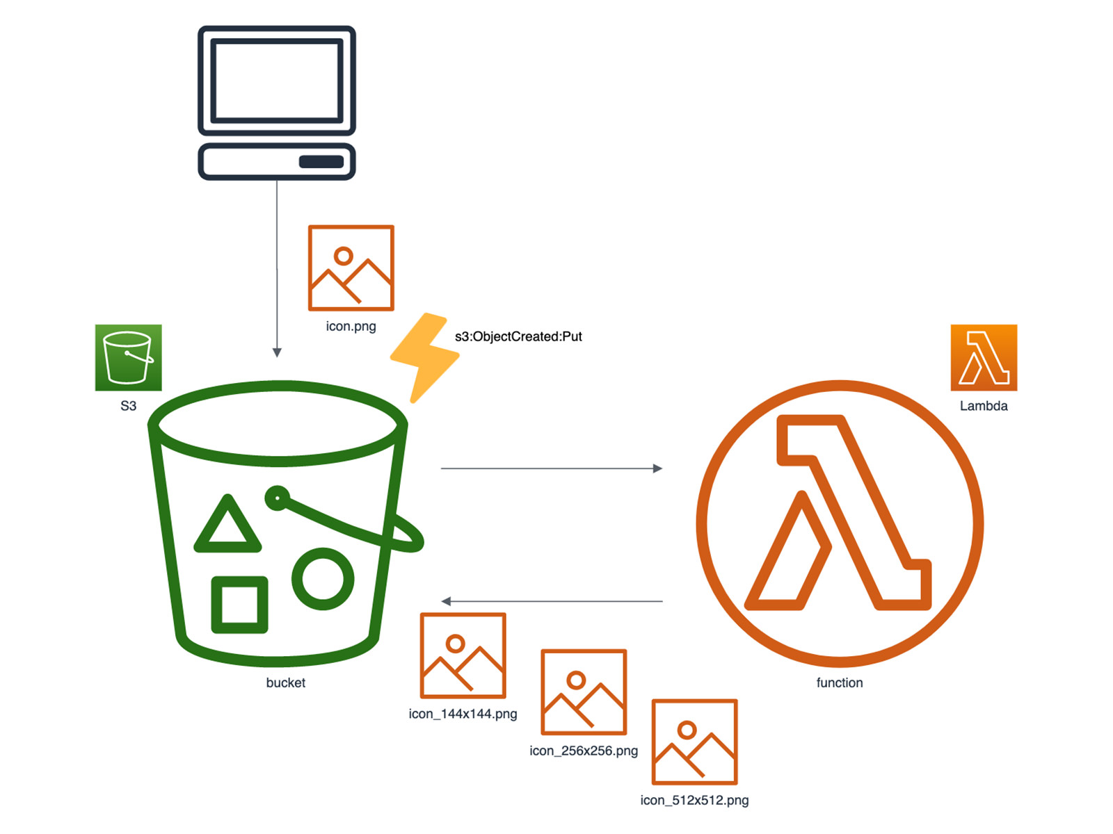 - 複数サイズの画像生成、バケットへ Put